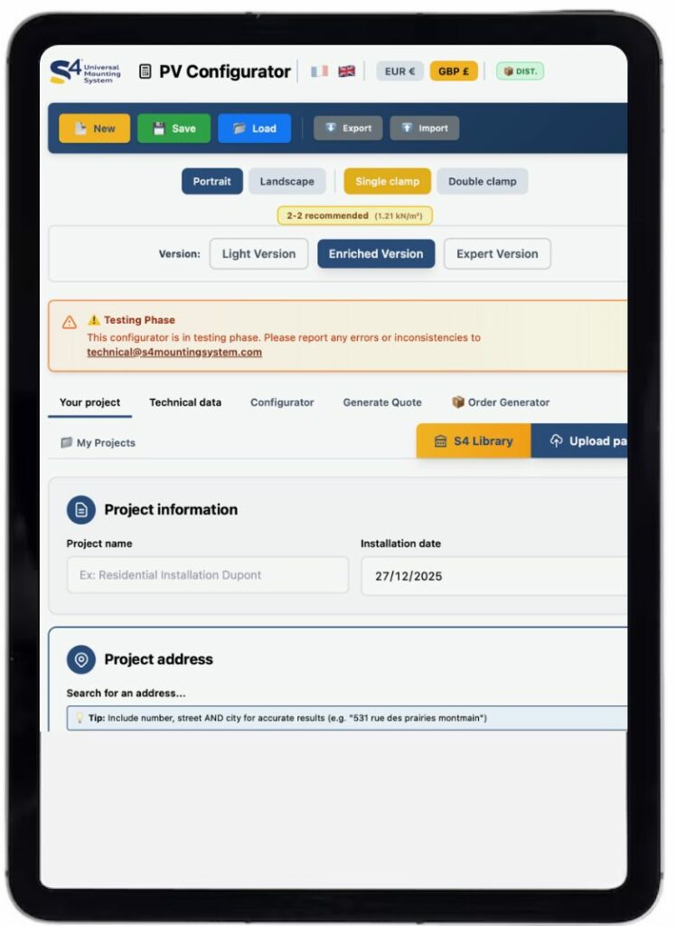 The S4 Configurator has been developed as a central component of the S4 ecosystem, supporting the design, validation, and deployment of photovoltaic systems in full compliance with applicable technical and regulatory frameworks.